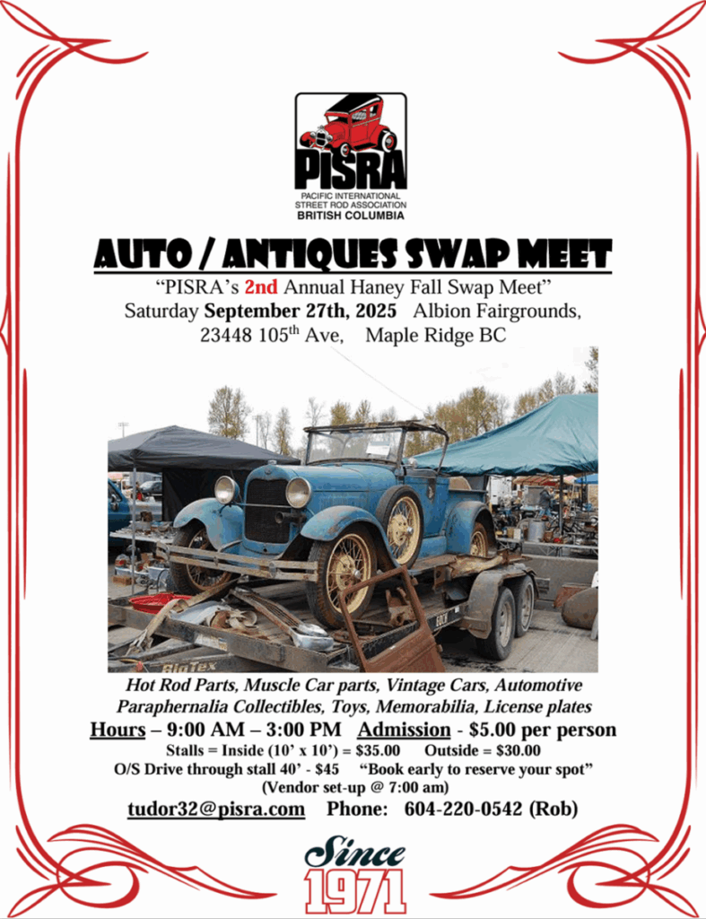 PISRA SWAP MEET Sept 27th by Bob Kelly | Jul 10, 2025 | Announcements | 0 comments Submit a Comment Cancel replyYour email address will not be published. Required fields are marked *Comment * Name * Email * Website Save my name, email, and website in this browser for the next time I comment.